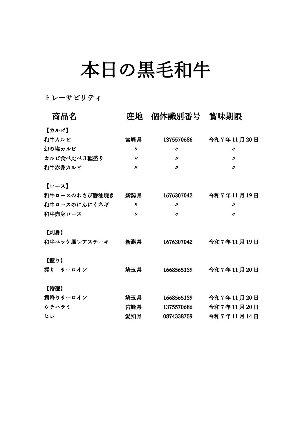 味樹園で取り扱っている和牛の個体識別番号を紹介しています。